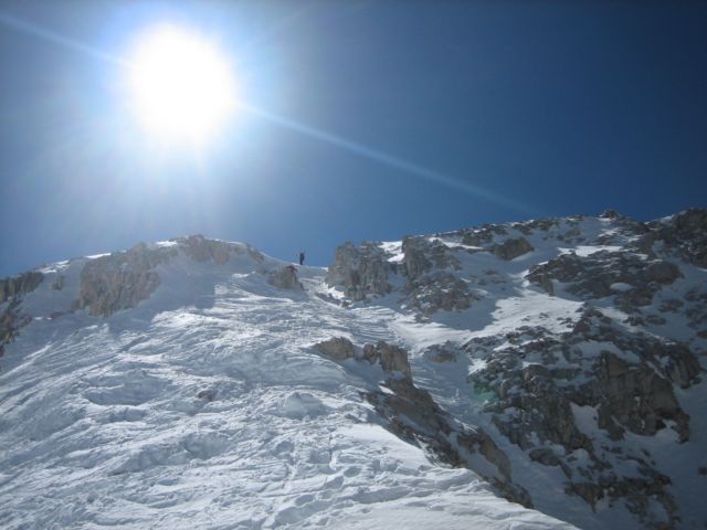 sulle pareti strapiombanti prima della cima |